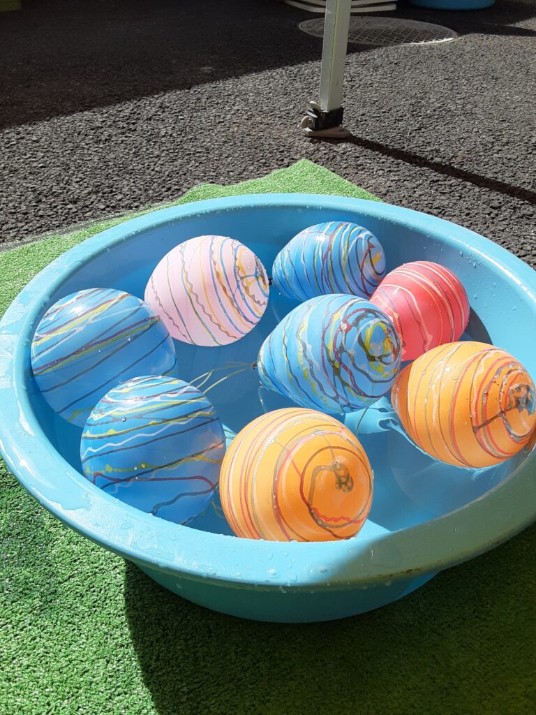 ヨーヨー釣りは好きな道具を使ってヨーヨーを釣り上げます。みんな好きな色のヨーヨーをGETしていましたよ。