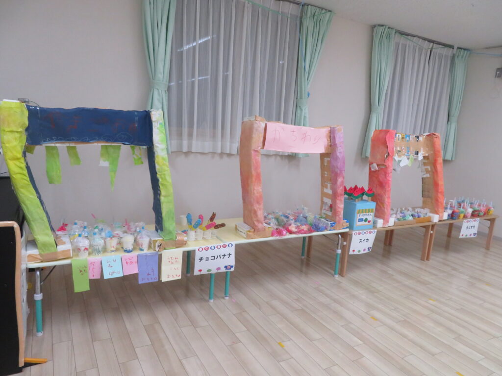 当日の屋台は、幼児クラスが店番をし、乳児クラスが買い物を楽しみました。