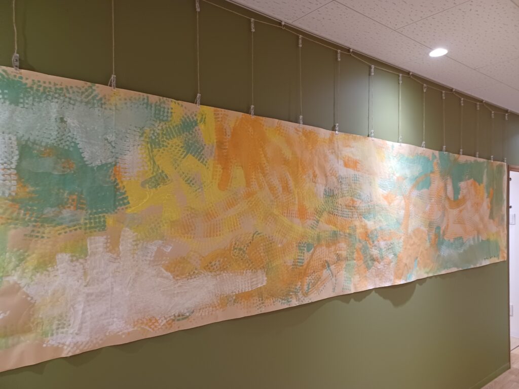 長い廊下いっぱいに飾られた こどもたちの作品!