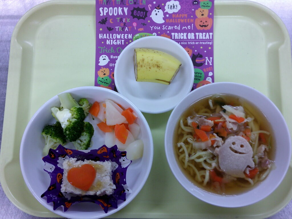 10月31日はハロウィンということで、給食もハロウィン仕様にしました♪