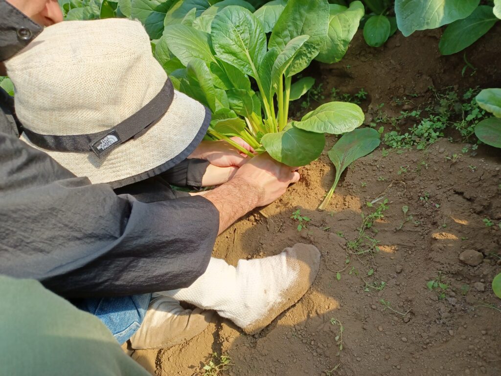 雲ひとつない青空、畑に広がる様々な野菜…まさに、収穫日和!