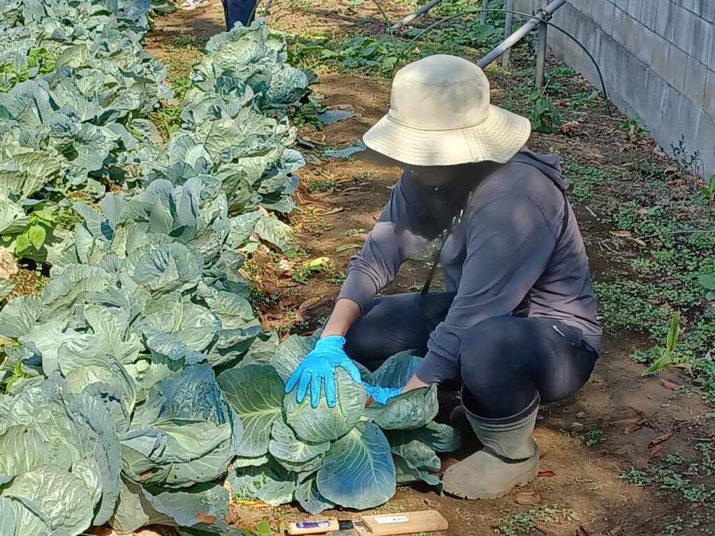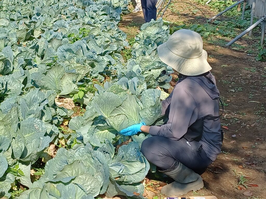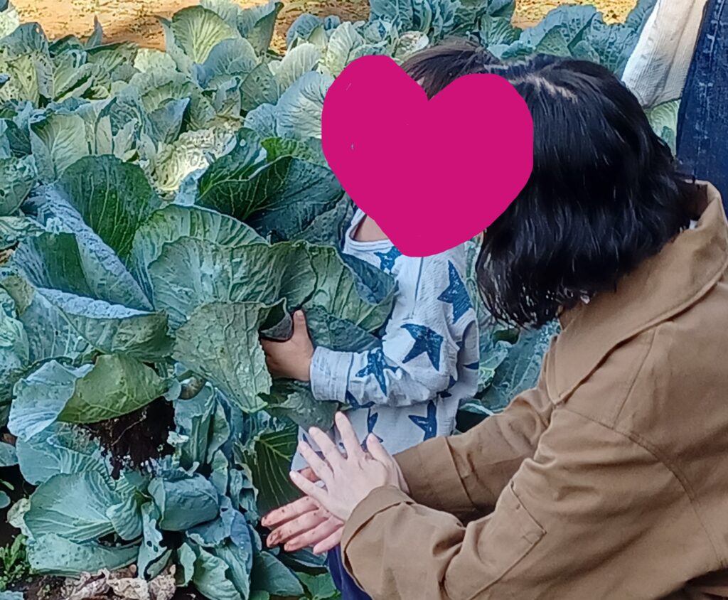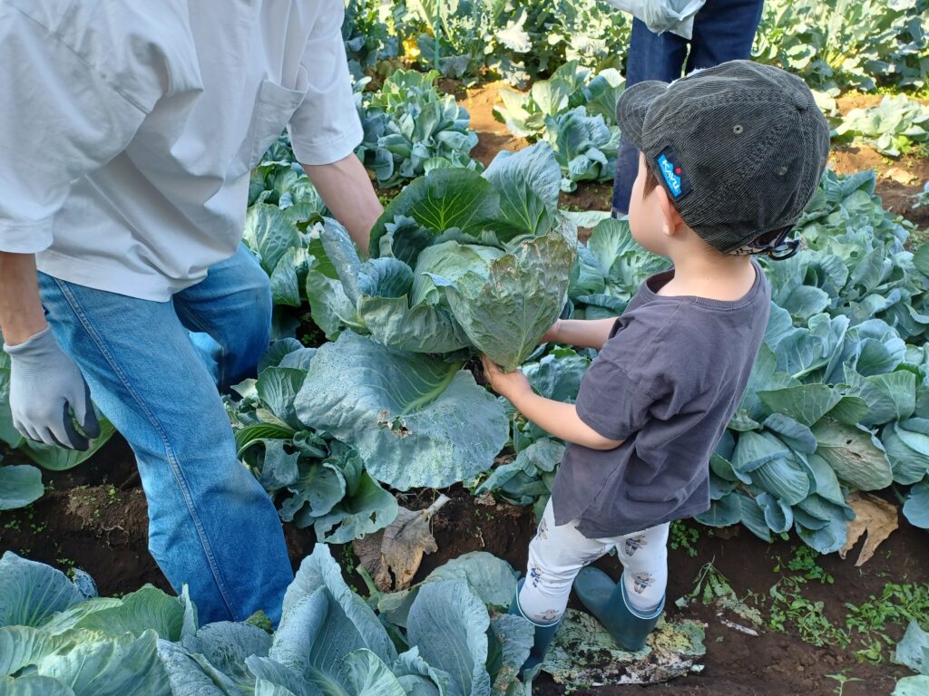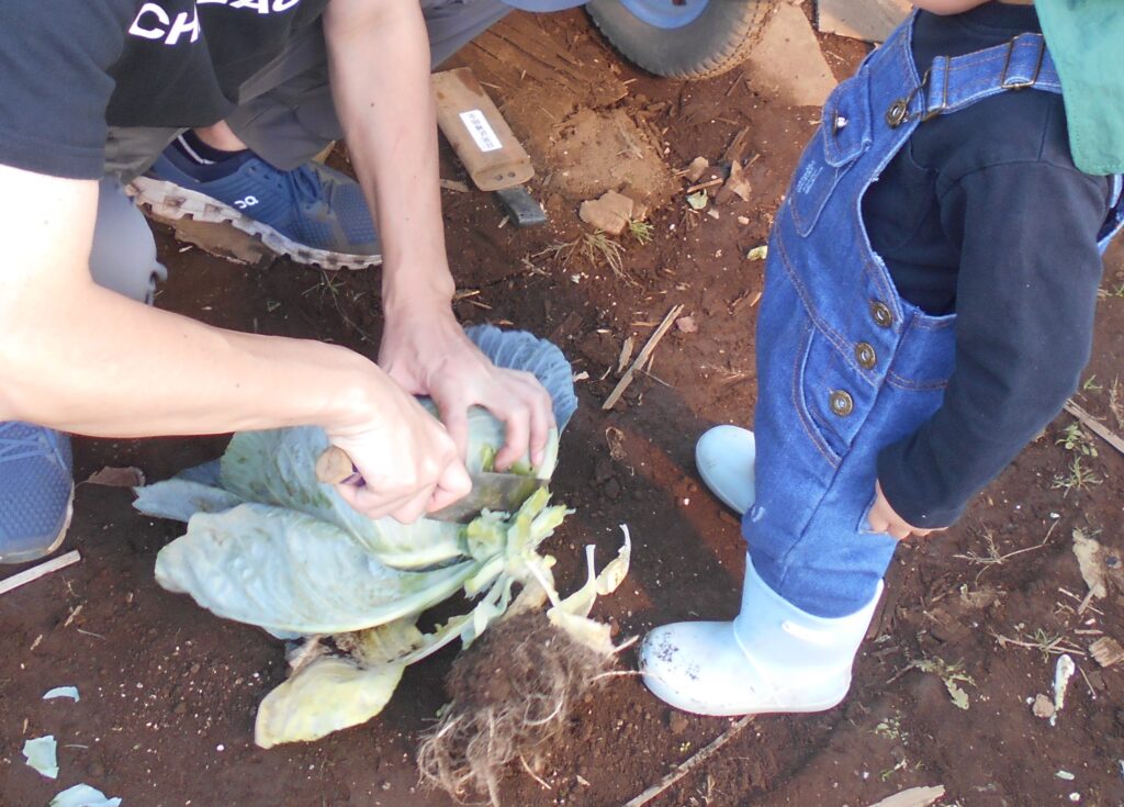 収穫したキャベツ・小松菜などは園にも持ち帰りました。