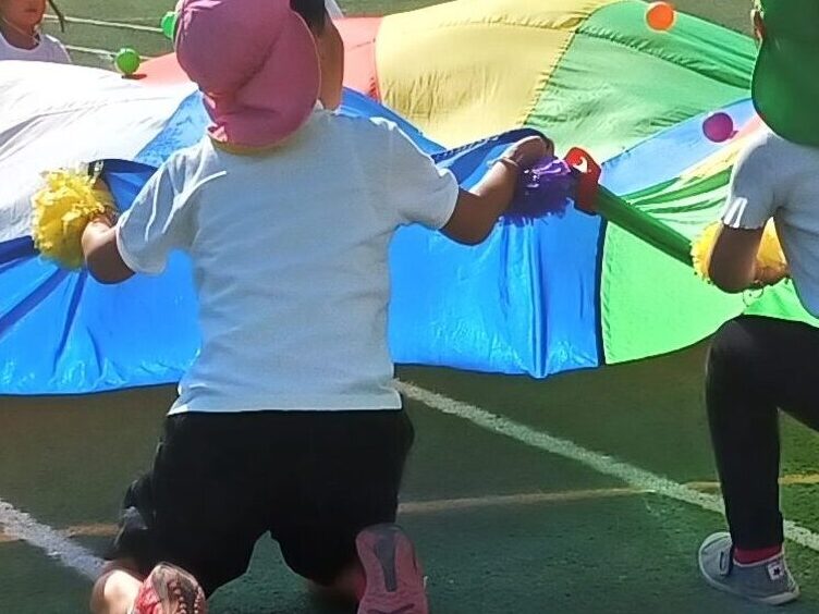そして、4歳きりん組と5歳らいおん組がパラバルーンの演技をしました。