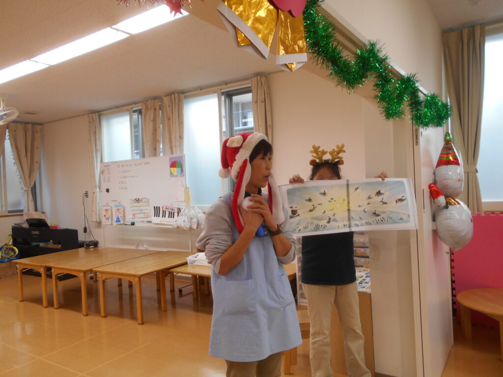 その後に先生によるクリスマス紙芝居の読み聞かせを楽しみました。
