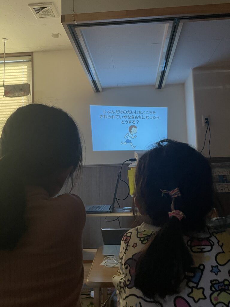 子ども達は動画を見ながら、「自分だけの大事なところはどこだろう?」と真剣に考えていましたよ。