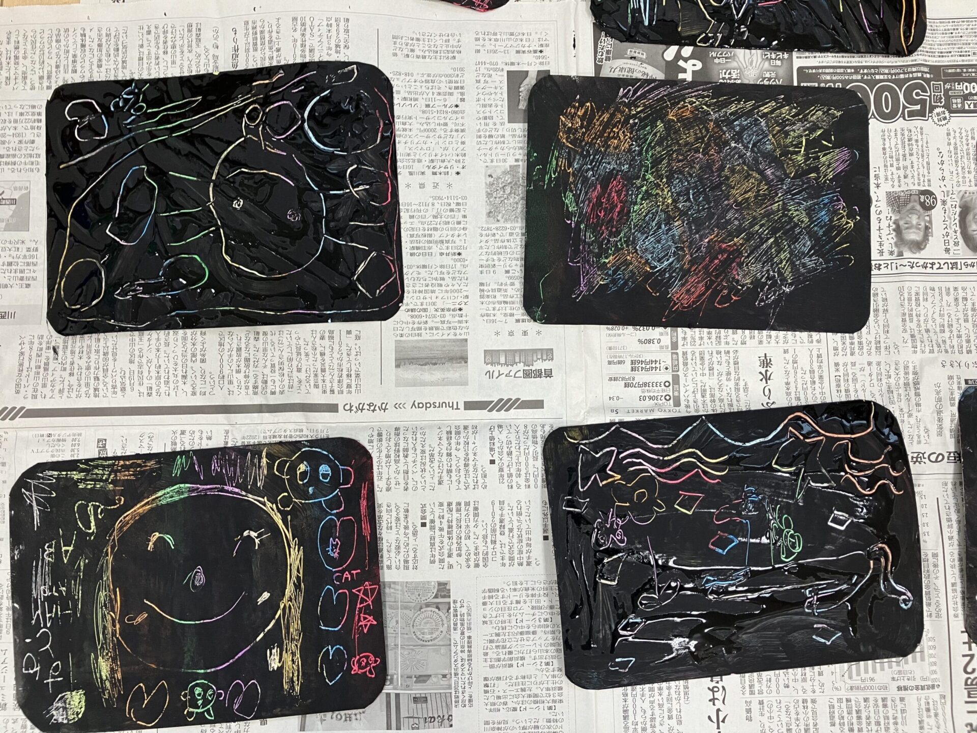 今回は4歳児、5歳児ともにそれぞれ『スクラッチアート』に挑戦!