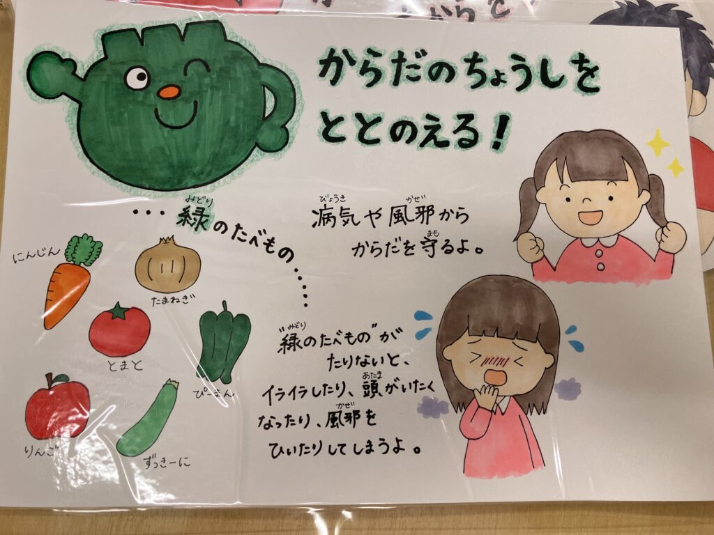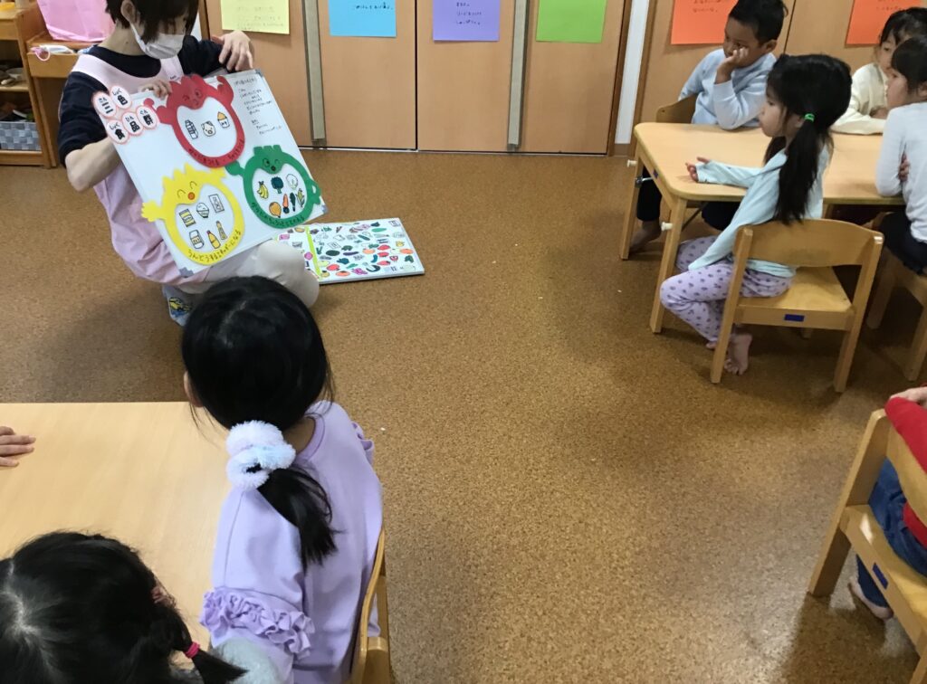今回は、「どんな栄養がある?」「食べないとどんな事が起こるだろう?」という話をしました。