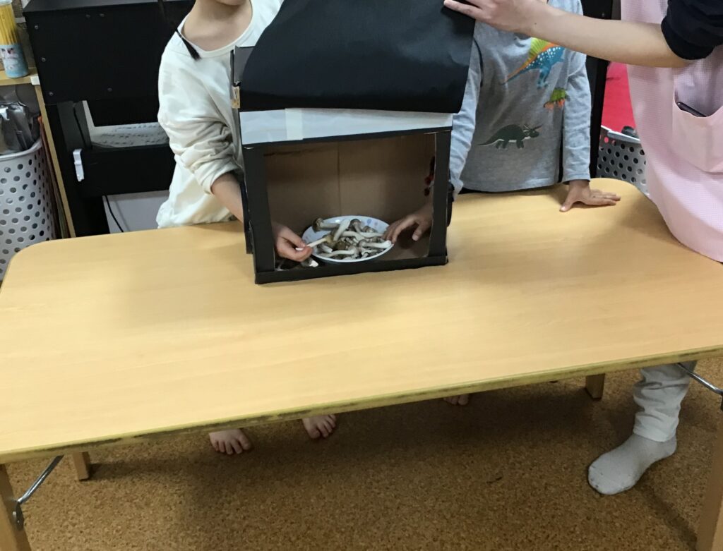 「色は?」「「しろ~!」」「えのきより大きい?小さい?」「「大きい~!!!」」と、ヒントを出すのもとっても上手ならいおん組です。