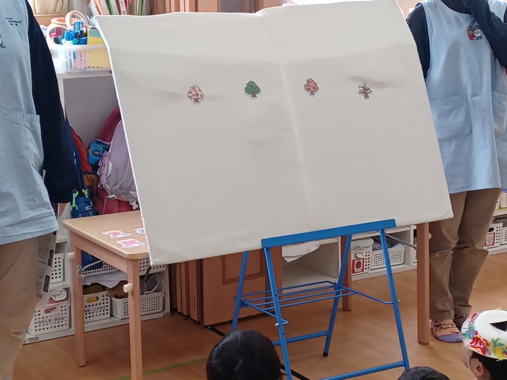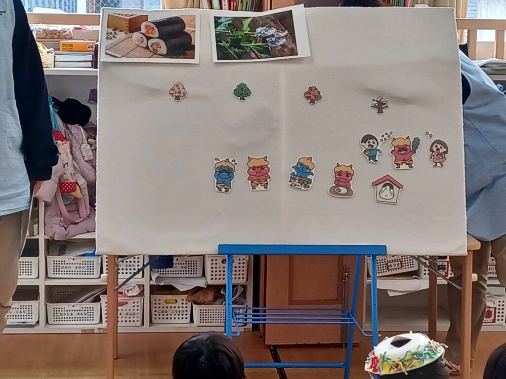 パネルシアターを用いて、節分についての話を保育者がしました。