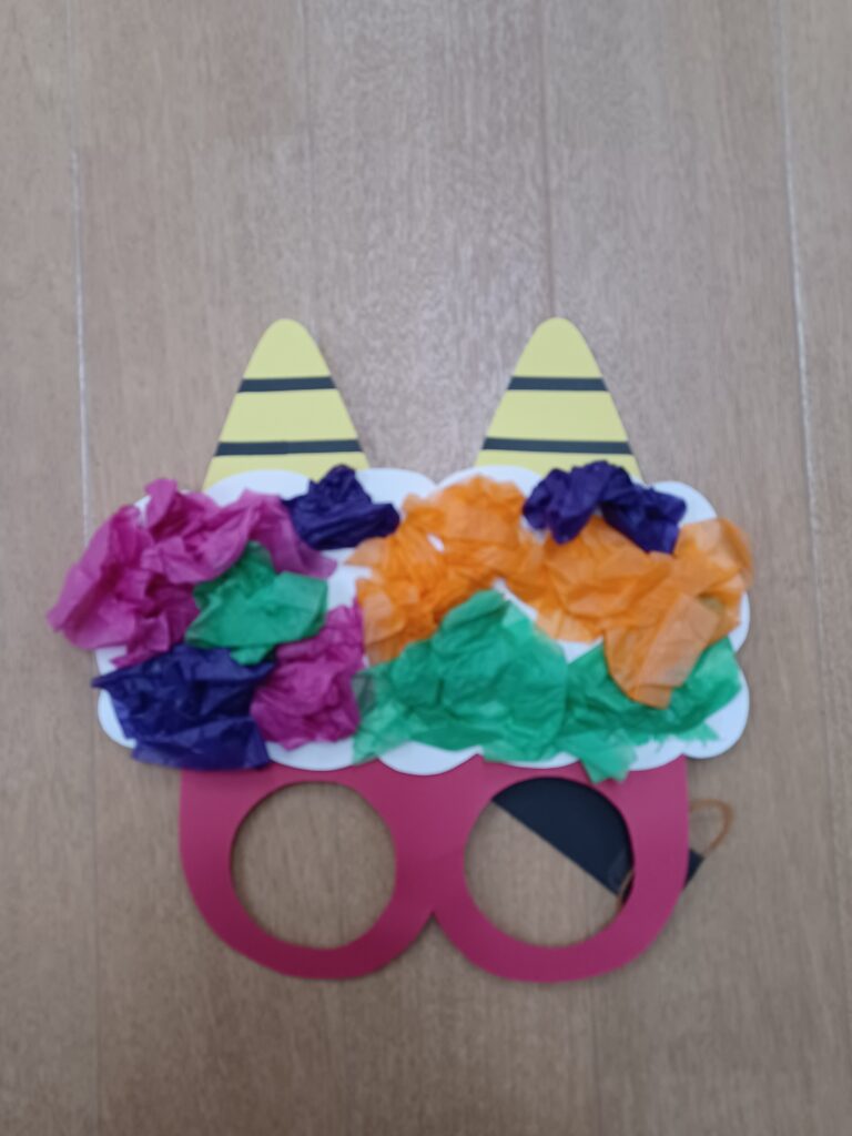 1歳児クラスは鬼の仮面を自分たちで作成しました。