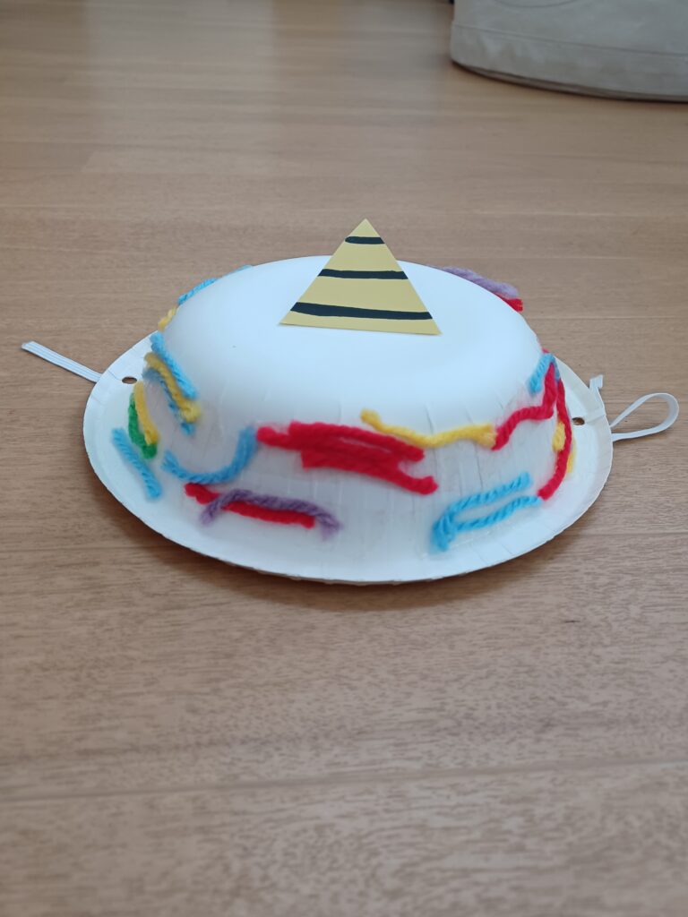 2歳児クラスはお面ではなく、帽子を作りました。