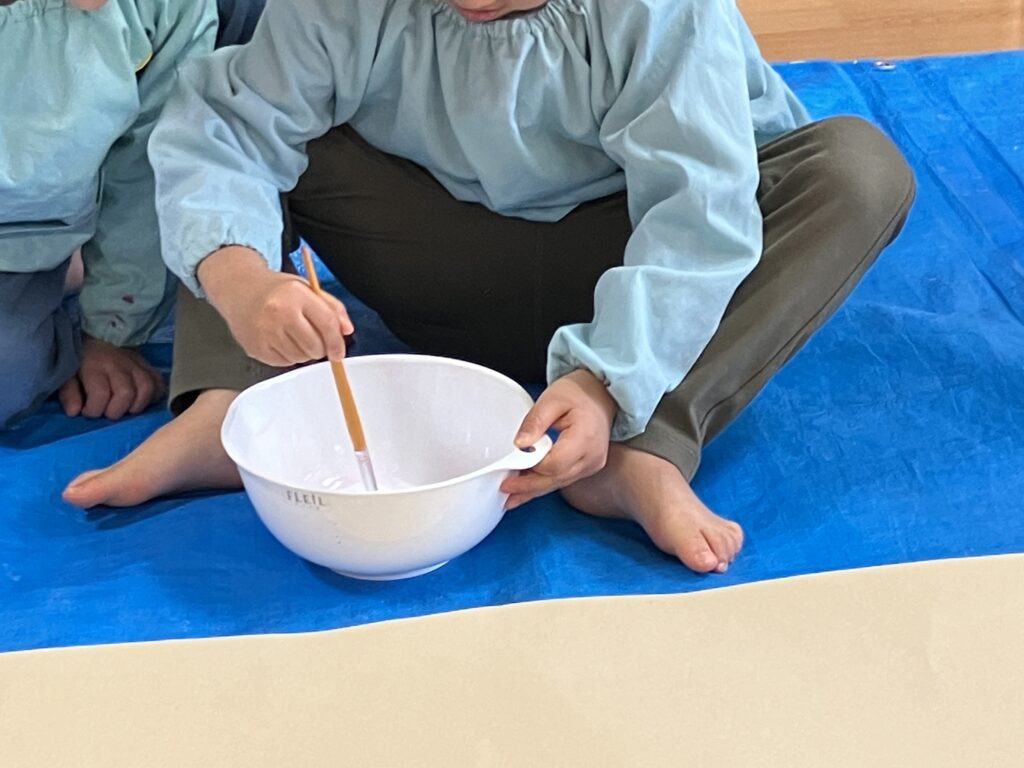 今日は白色の絵の具で