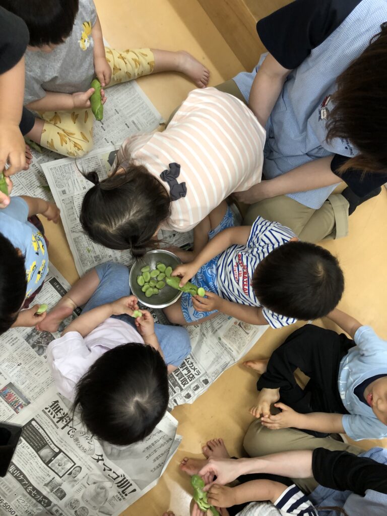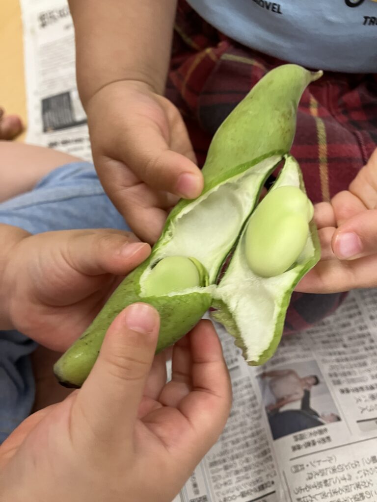 そら豆は翌日のおやつに提供し、みんな美味しくいただきました☺