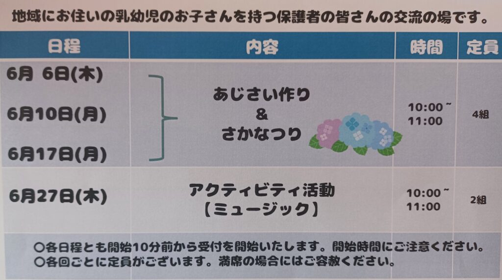 6月・子育てサロンのご案内