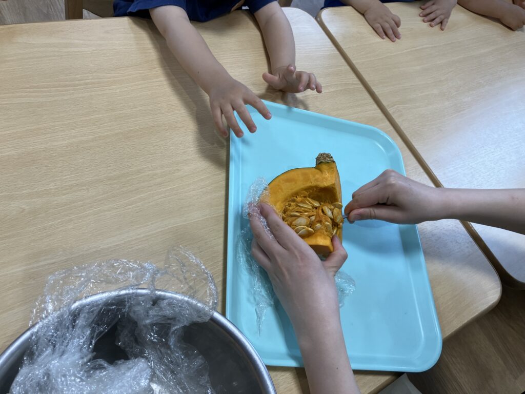⁂かぼちゃのお腹を見てみよう!(1歳児)
