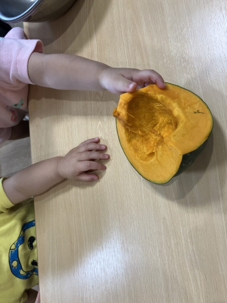 みんなたくさんかぼちゃを触れて楽しい食育になりました♪
