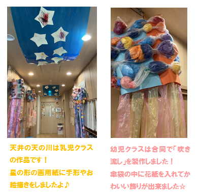 七夕の1週間ほど前から廊下には、子ども達が作った七夕飾りが飾ってありました!