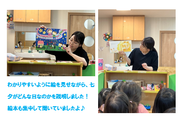 七夕の集いも乳児と幼児に分かれて、行いました。