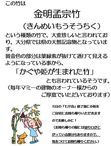 アソシエ柿の木坂マミー保育園の建物のオーナー様から、毎年立派な笹を頂いています。