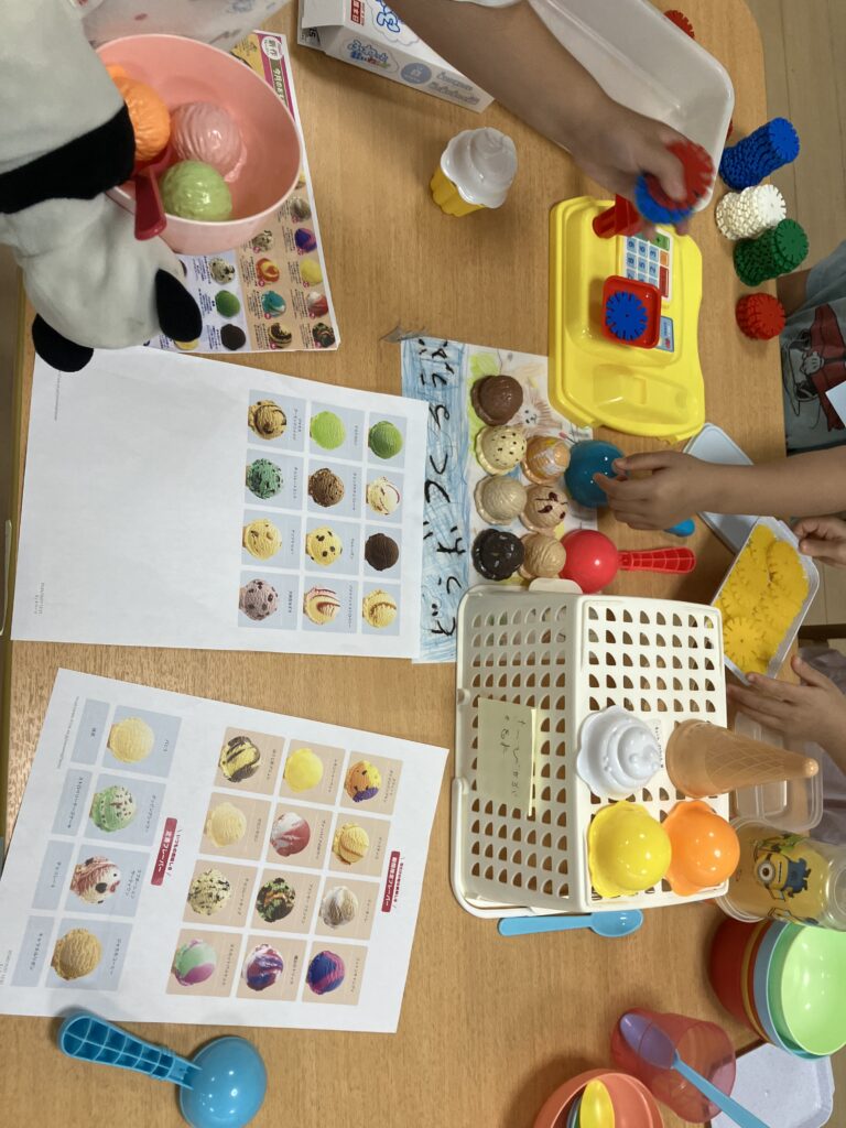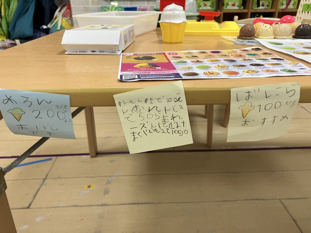 ある日の午後、5歳児ぶどう組さんがアイスクリーム屋さんごっこをして遊んでいました。