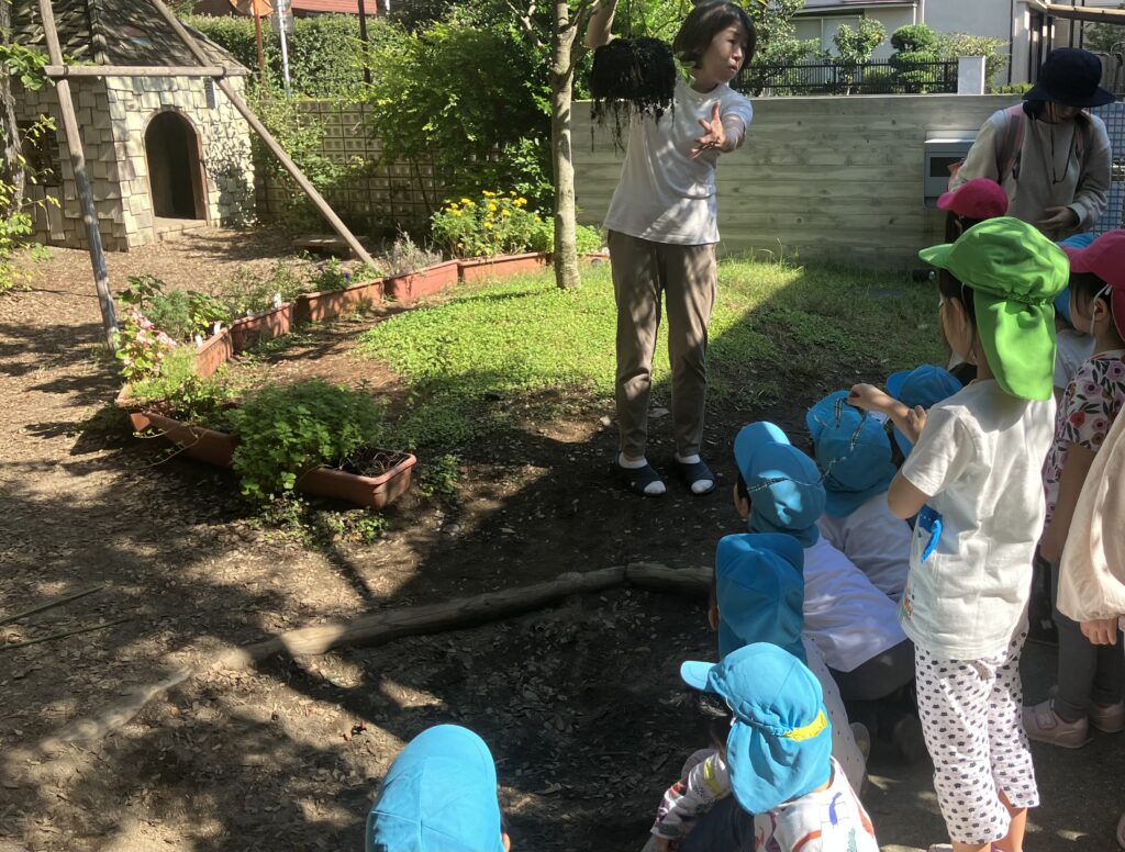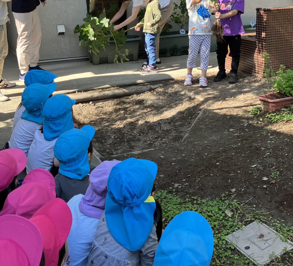 「これ、何だろうね」の問いかけに、「根っこだよ!」と知っているお友だちが答えてくれました。