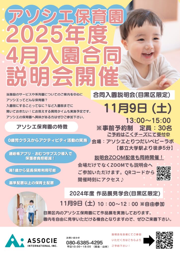 来年度4月入園ご希望の方を対象としたアソシエ保育園合同説明会を2024年11月9日㈯に開催致します!