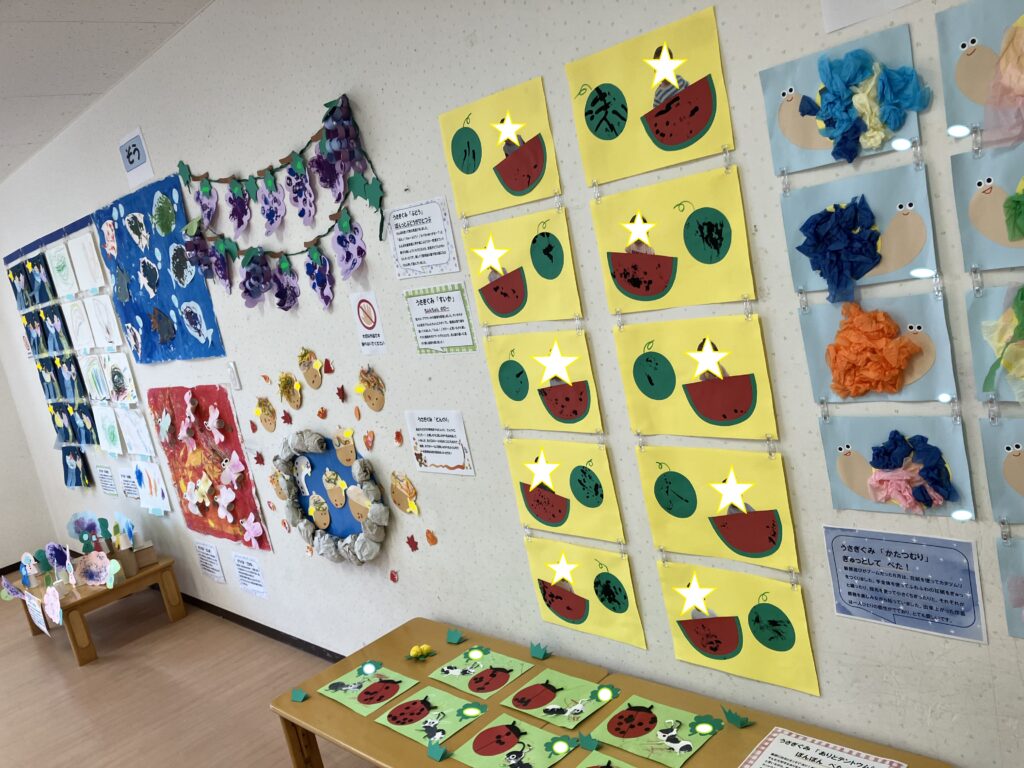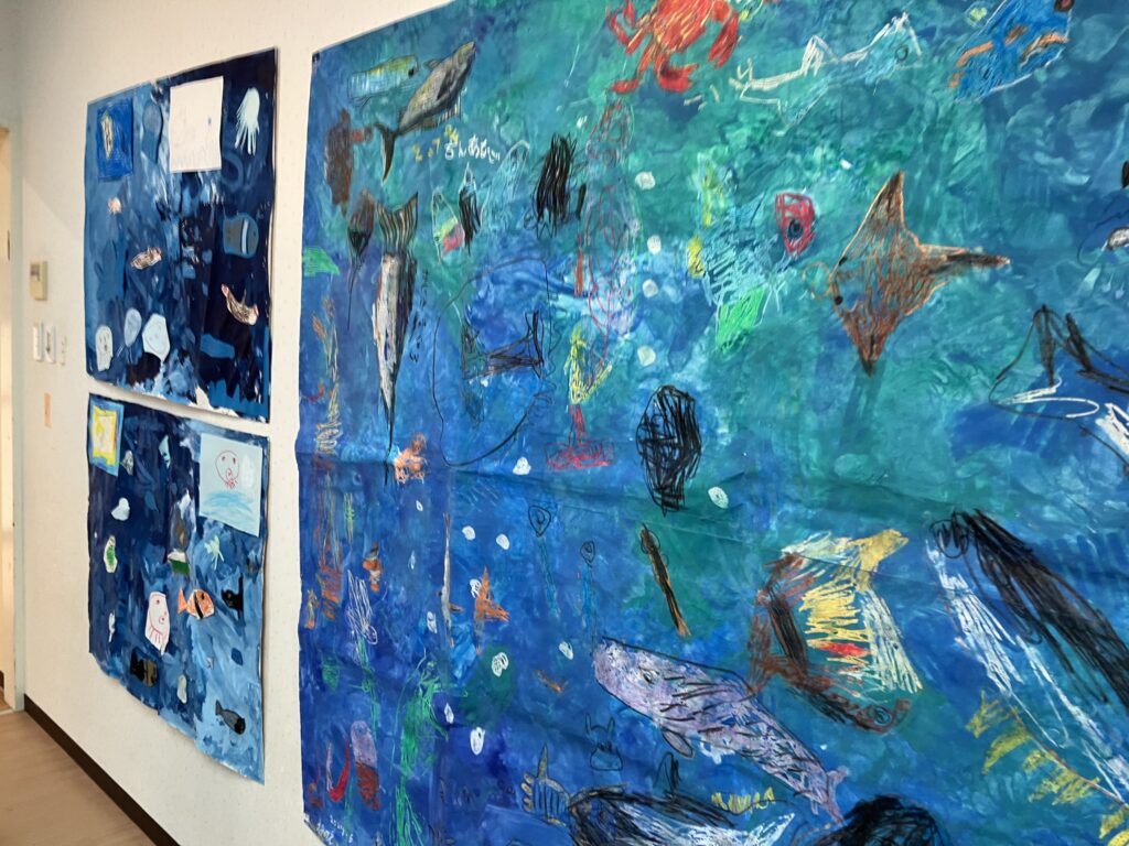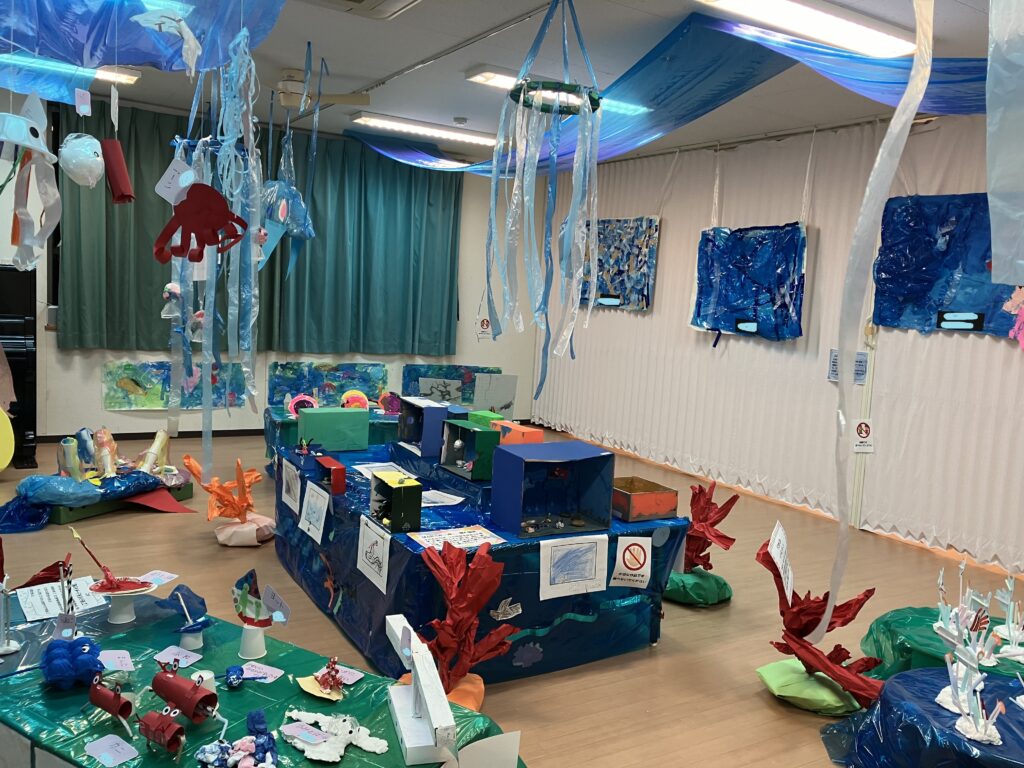 当日は落ち着いた自然の音楽を流し、海を感じられるように展示したため保護者からも素敵な空間だったと温かい感想をいただきました♪
