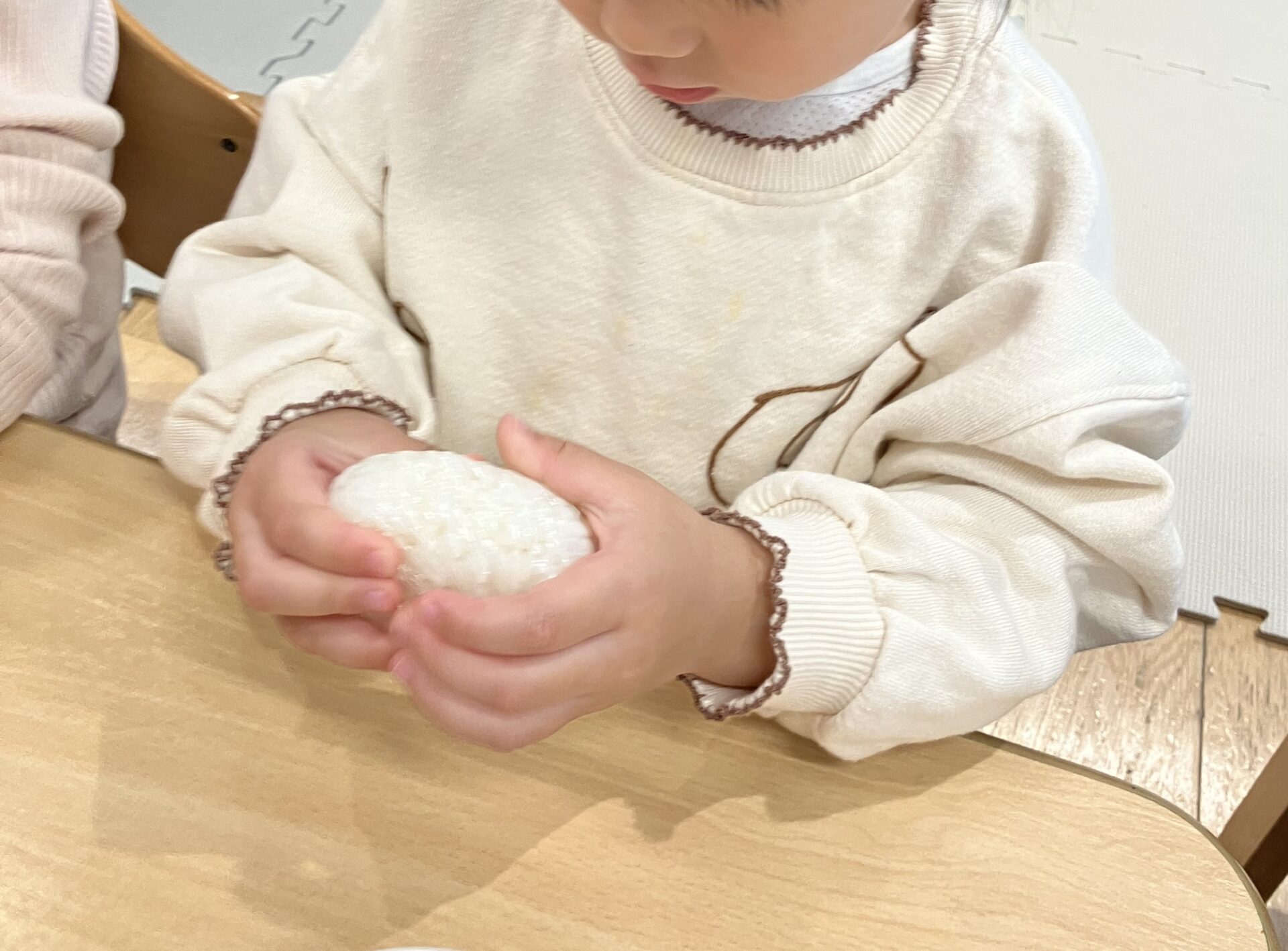 頑張ってお米を研いでくれたので、この日は特別感が出るように好きな形のおにぎりにして食べることに…!