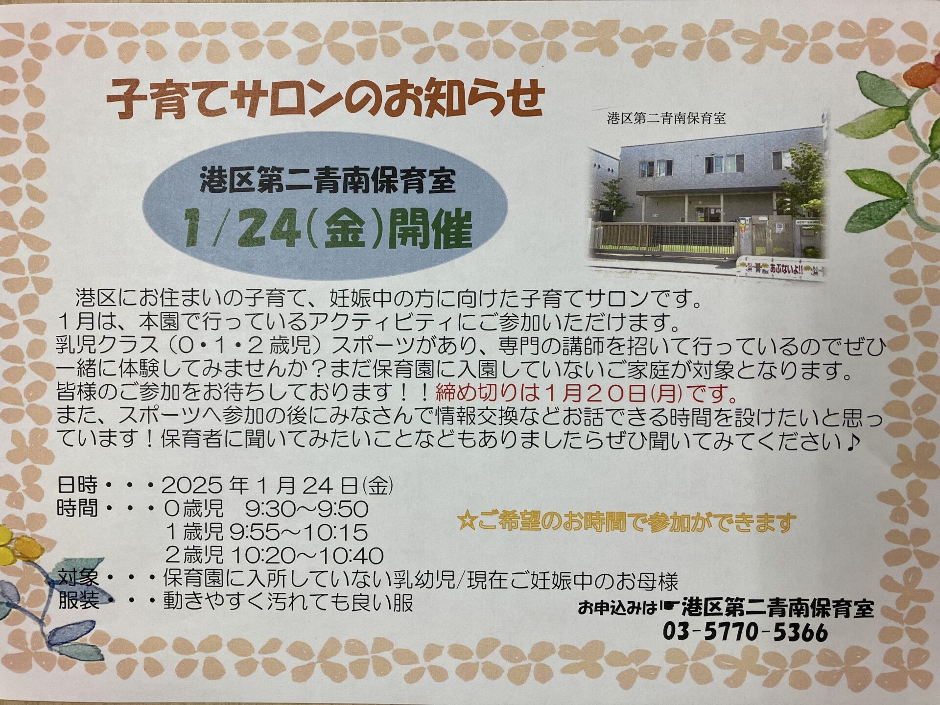 1月24日(金)に子育てサロンを開催いたします。