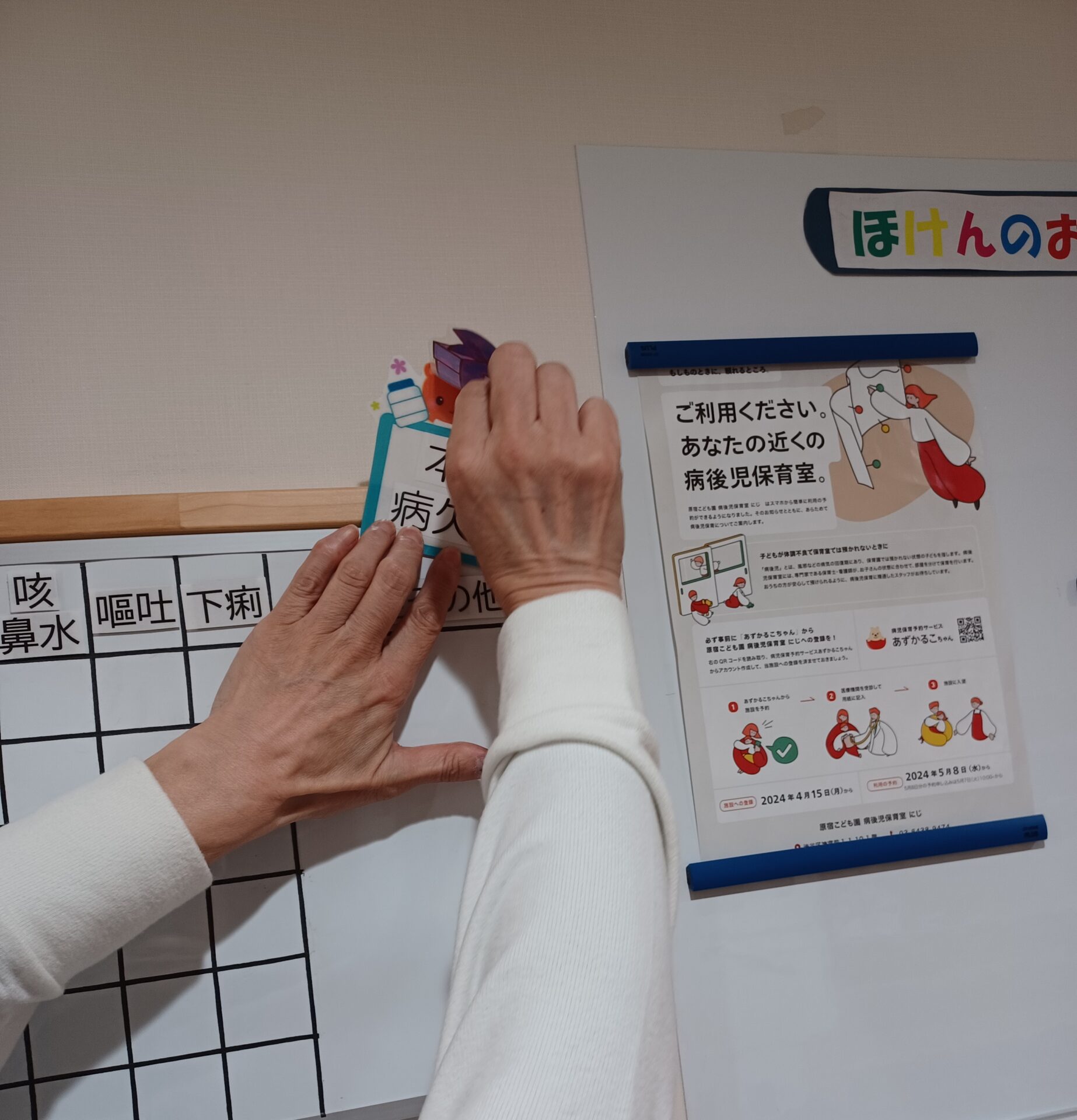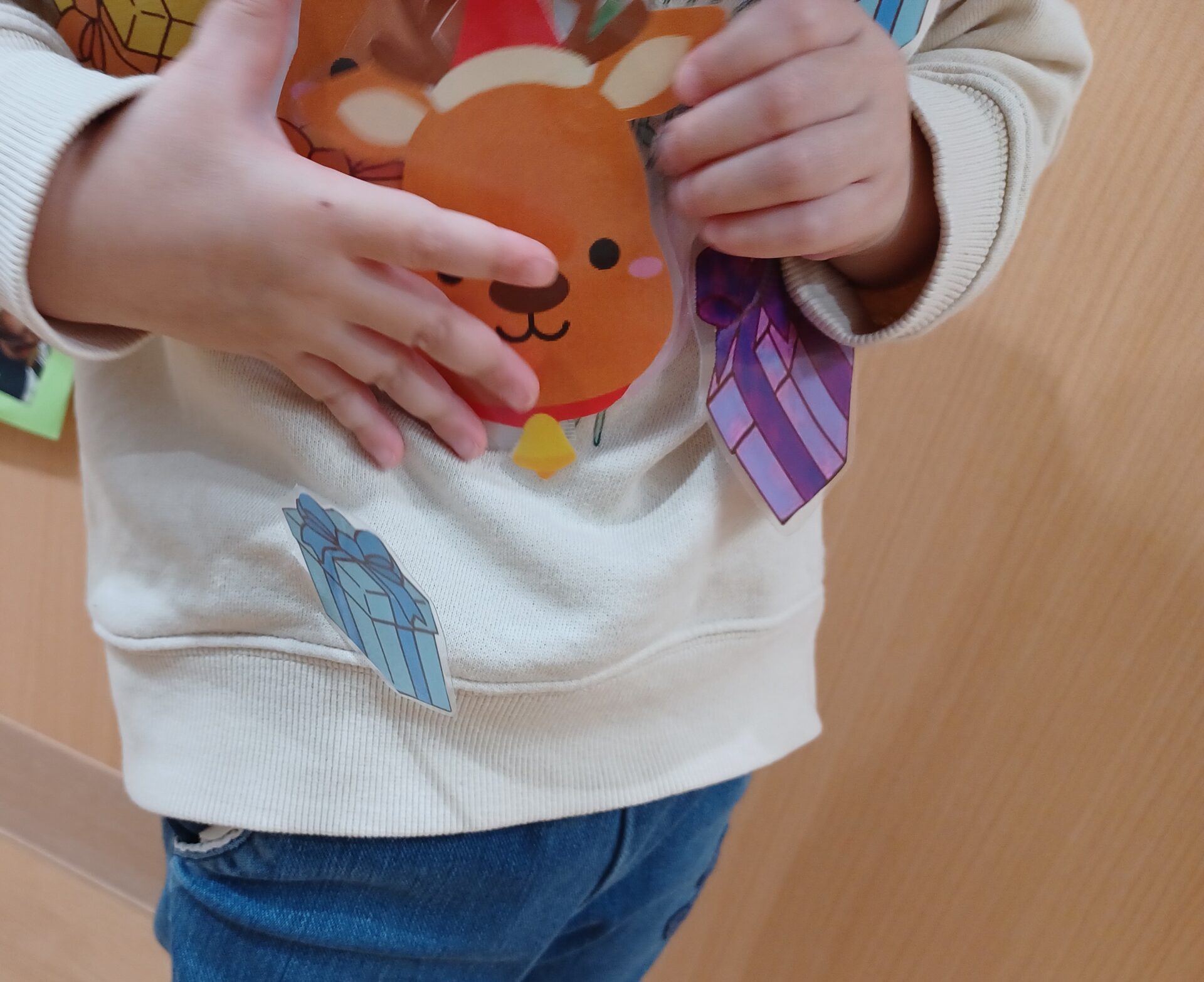 見つけたものをお洋服に貼って見せてくれる子もいましたよ!