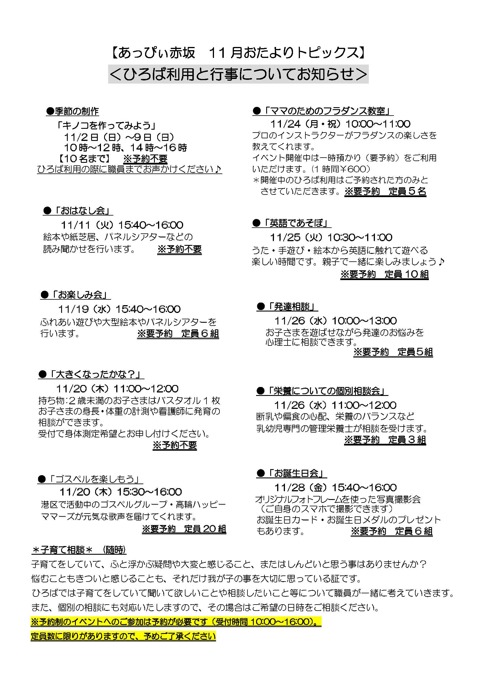 あっぴぃ赤坂の11月のイベントをお知らせします。