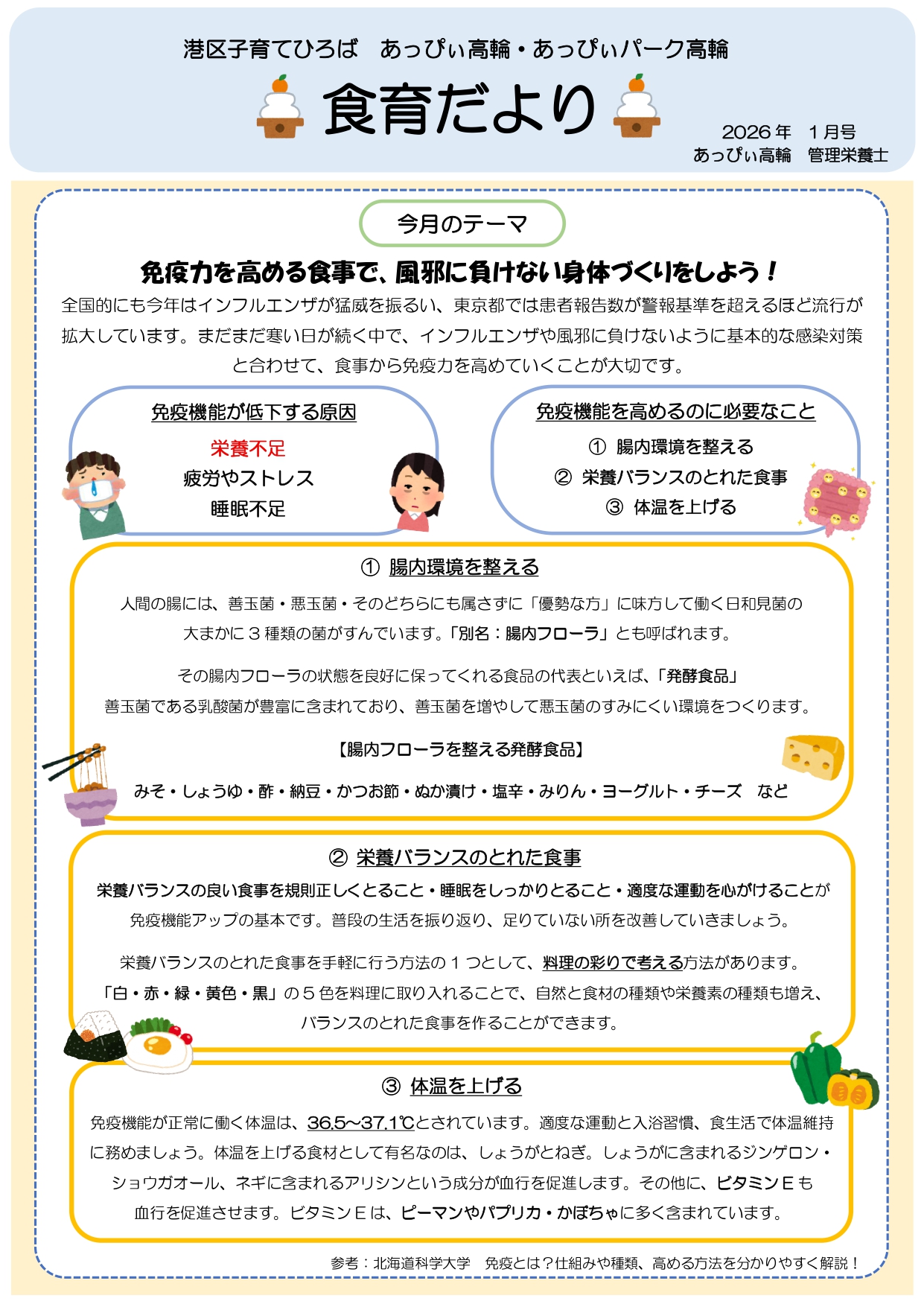 あっぴぃ高輪・あっぴぃパーク高輪 食育だより 1月号