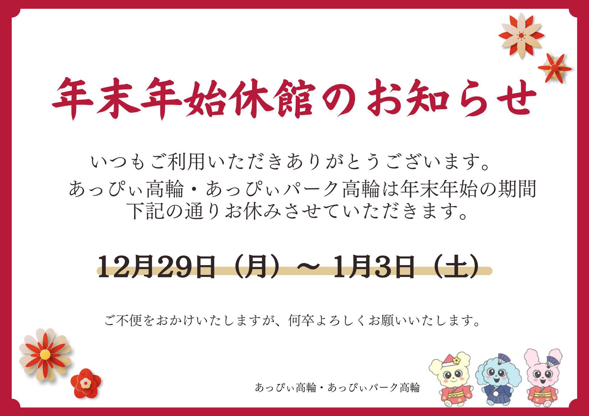 あっぴぃ高輪・あっぴぃパーク高輪年末年始休館のお知らせ