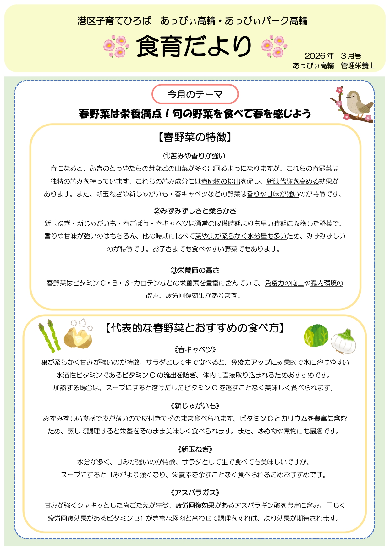 あっぴぃ高輪・あっぴぃパーク高輪3月の食育だより