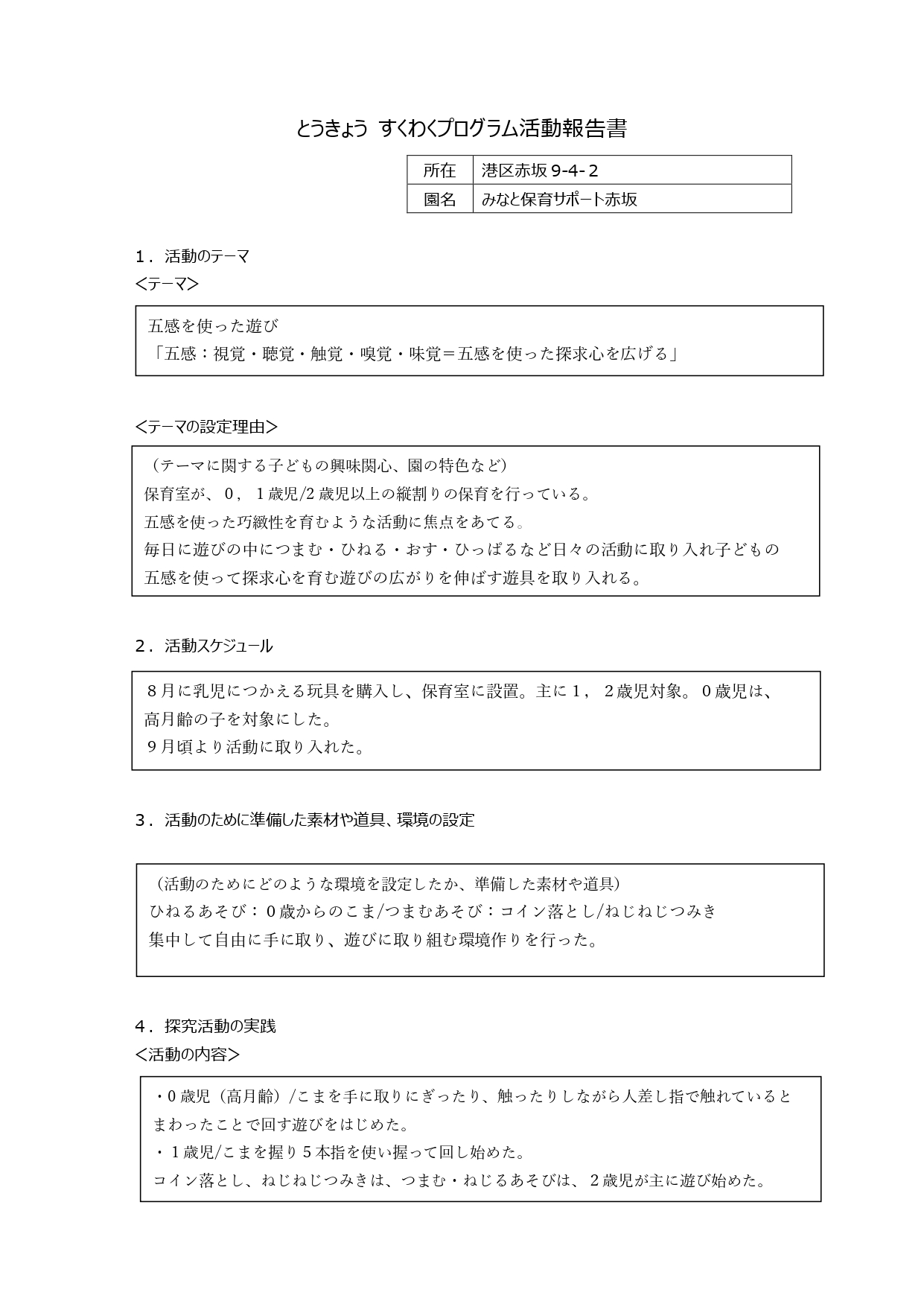 みなと保育サポート赤坂:令和7年度東京都すくわく事業報告書①