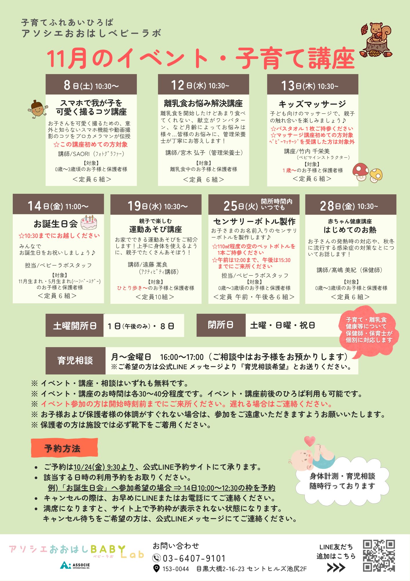 アソシエおおはしベビーラボ11月のイベントをお知らせします。