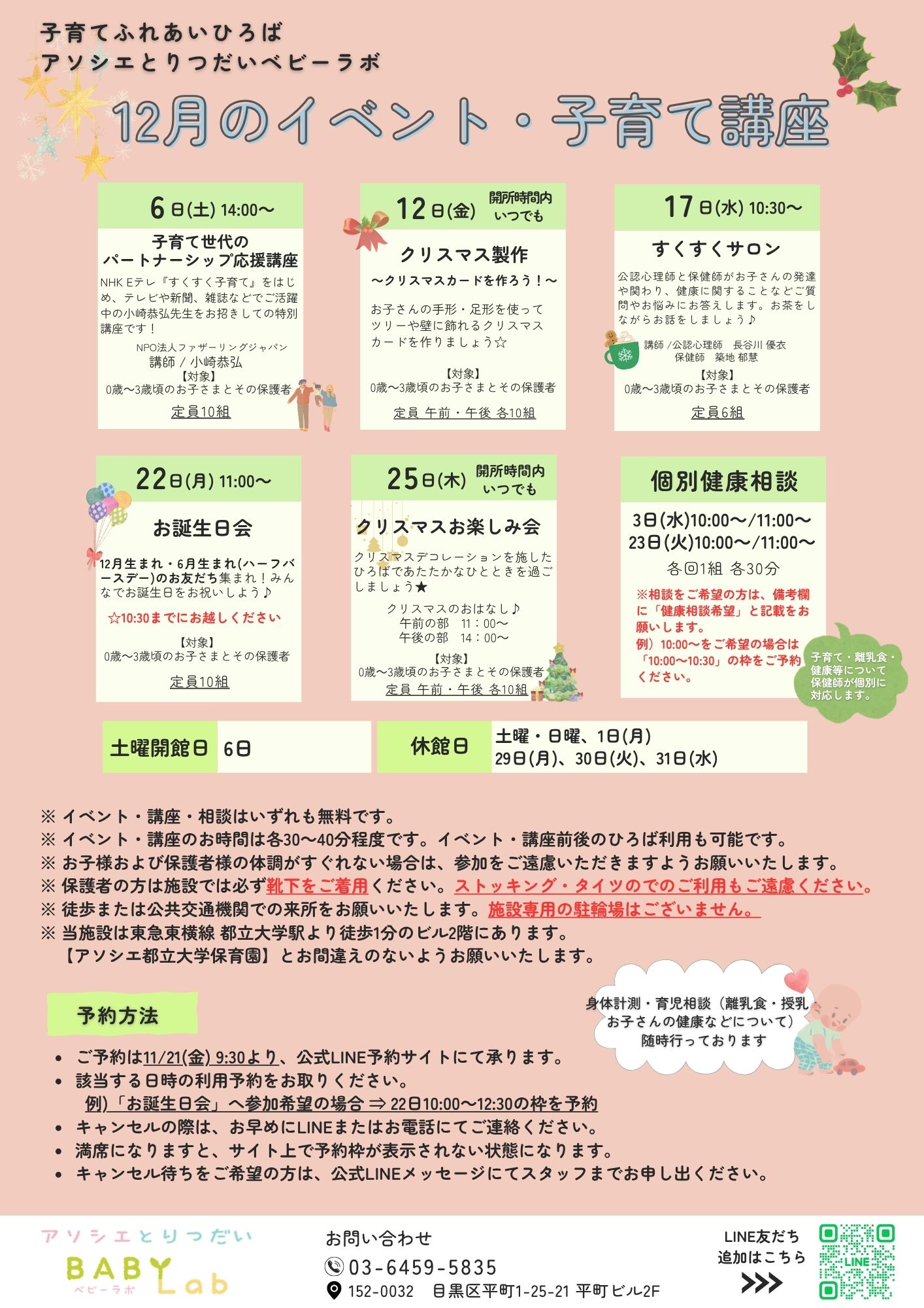 アソシエとりつだいベビーラボ12月のイベントをお知らせします。