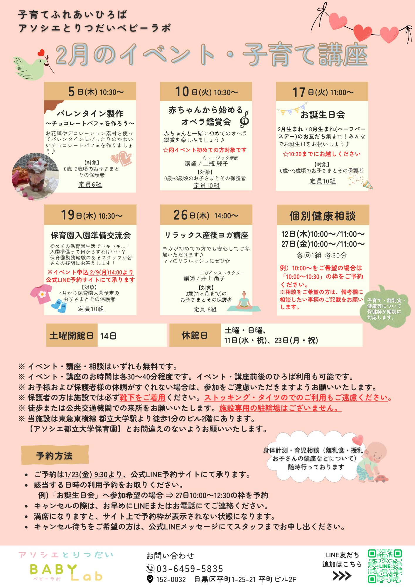 アソシエとりつだいベビーラボ2月のイベントをお知らせします。